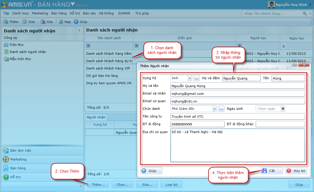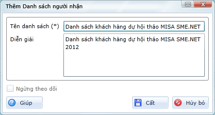Trường hợp người dùng muốn Sửa, Xóa danh sách người nhận có thể chọn biểu tượng tương ứng trên thanh công cụ để thực hiện.