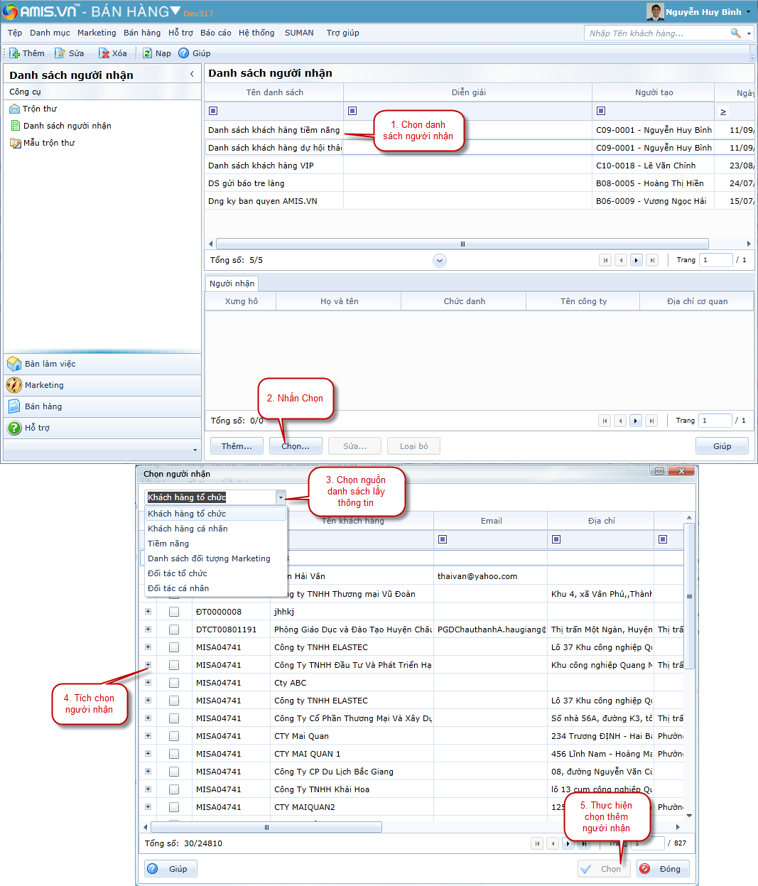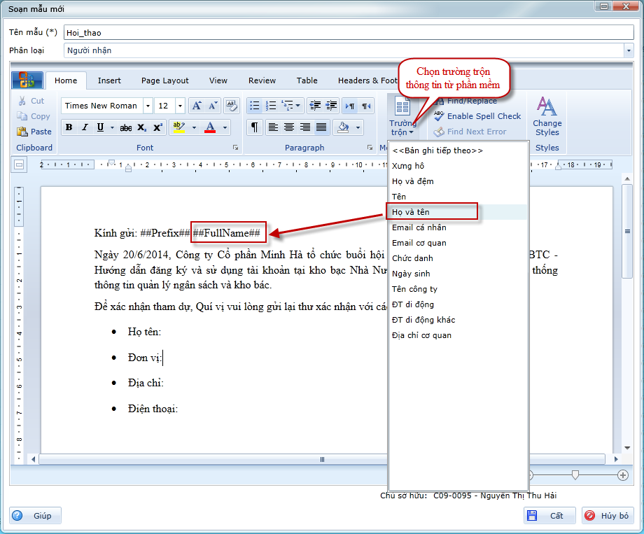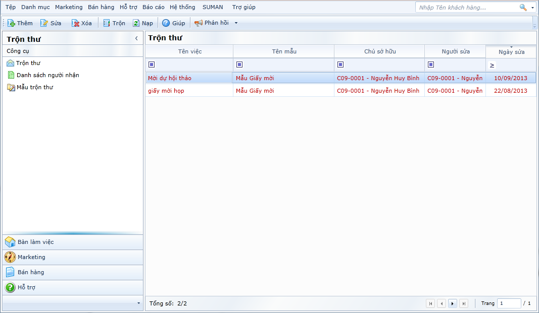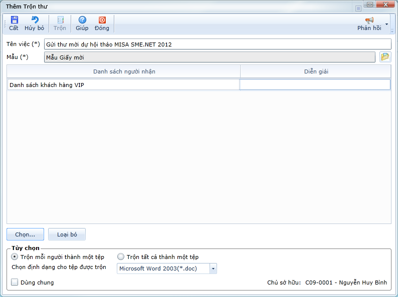 Home > Bán hàng > Hướng dẫn sử dụng các chức năng > Menu Tệp > Trộn thư