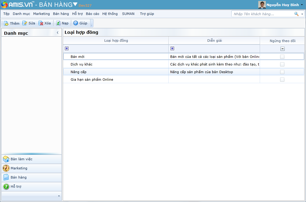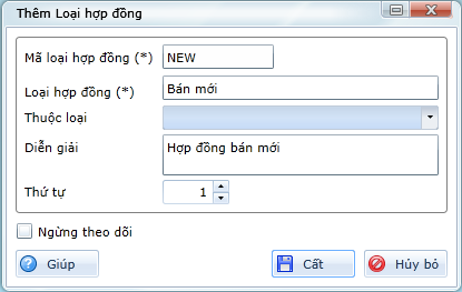 Home > Bán hàng > Hướng dẫn sử dụng các chức năng > Menu Danh mục > Hợp đồng > Loại hợp đồng