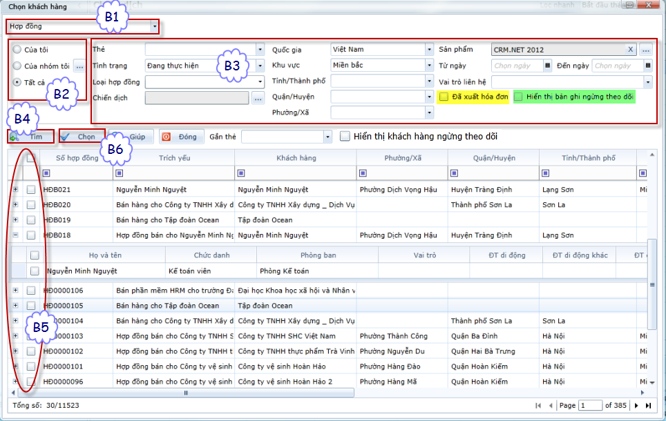 Chọn khách hàng từ các hợp đồng ký kết với khách hàng