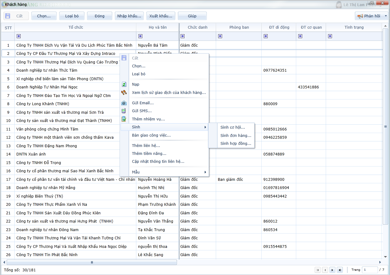 Khách hàng cá nhân với thông tin là thông tin cá nhân của tiềm năng. Để xem được thôn tin khách hàng này, người sử dụng vào menu Bán hàng\Khách hàng\Khách hàng cá nhân