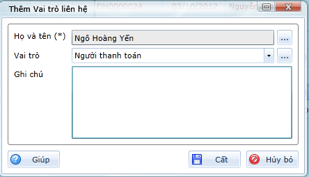 Nhập các thông tin vào cửa sổ Thêm Vai trò liên hệ