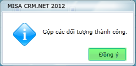 Tích chọn thông tin của Khách hàng muốn giữ lại và nhấn Gộp. Xuất hiện thông báo về việc gộp khách hàng