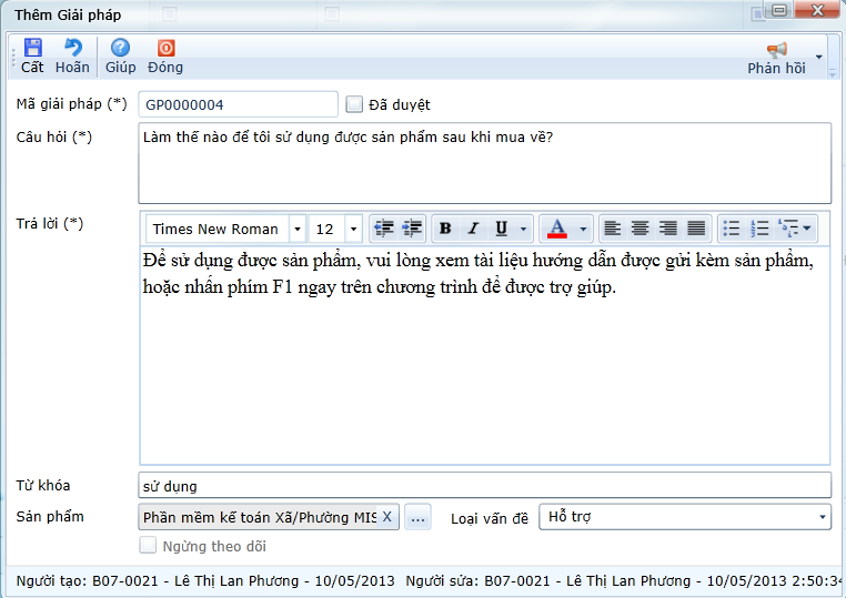 Cho phép nhân viên tư vấn thực hiện tạo giải pháp từ nội dung giao dịch đã có. Cách thao tác: I. Thêm một giao dịch cho một thẻ tư vấn