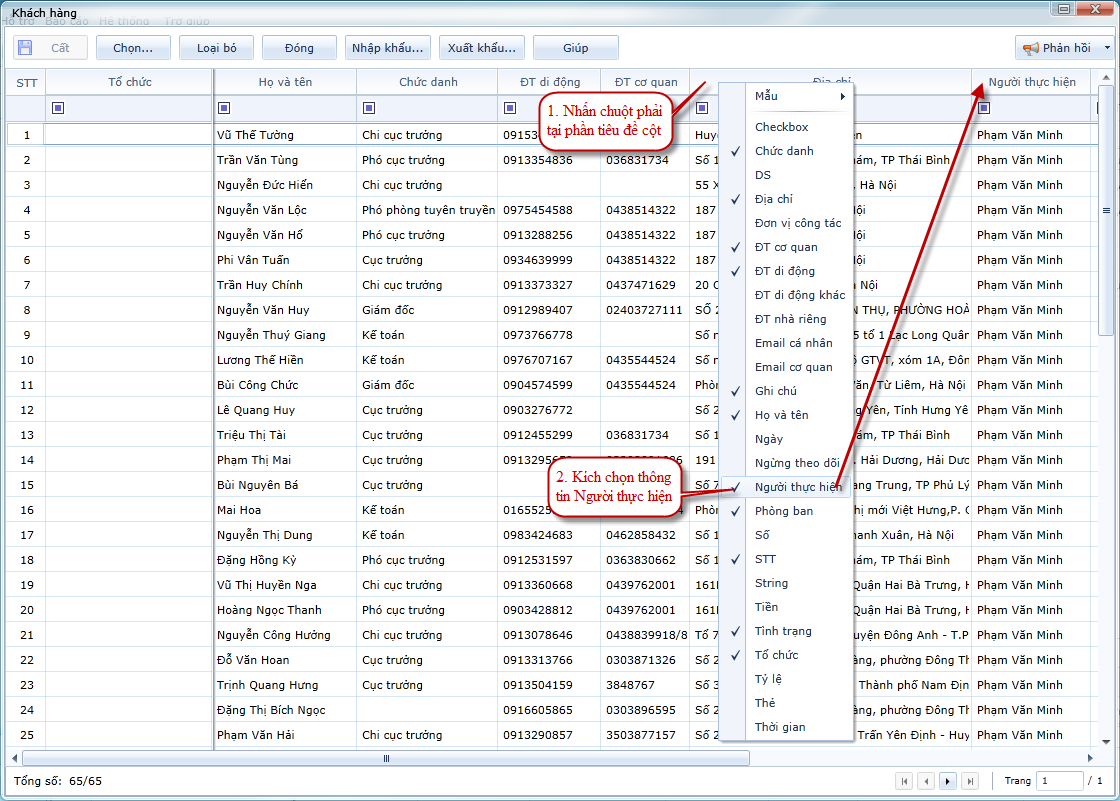 khách hàng nào ngay tại màn hình danh sách, thực hiện như sau: