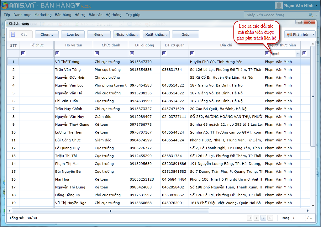 một số đối tác quan trọng, nhân viên kinh doanh có thể đánh dấu lại