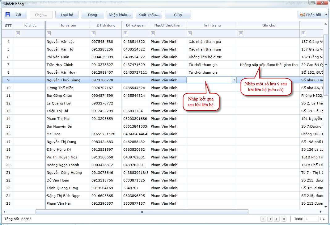 kinh doanh sẽ căn cứ vào kết quả phản hồi đó để ghi nhận vào chiến dịch