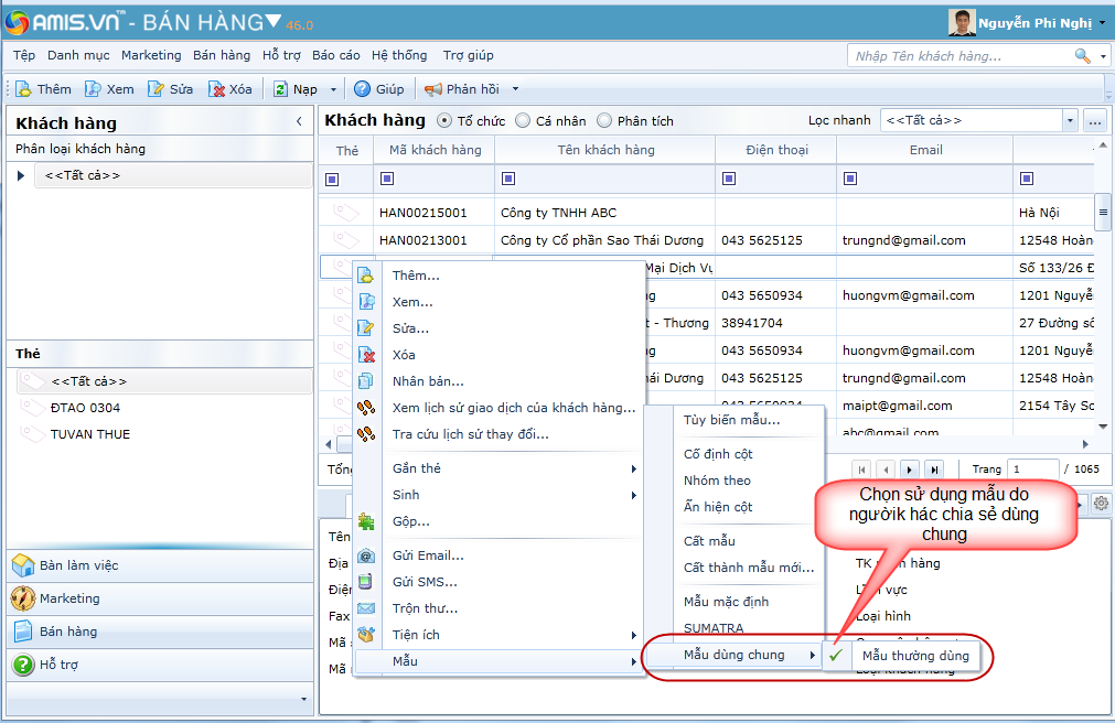 Mẫu dùng chung: Hiển thị danh sách những mẫu do người dùng khác thiêt lập và chia sẻ. Người dùng có thể chọn sử dụng luôn mẫu đó mà không cần mất công thiết lập mẫu mới . Thao tác chi tiết như sau: