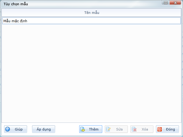 Nhấn chọn mẫu trên màn hình Tùy chọn mẫu. Trong trường hợp chưa có mẫu mong muốn thì nhấn nút Thêm, xem hướng dẫn chi tiết tại phần Thiết lập mẫu.