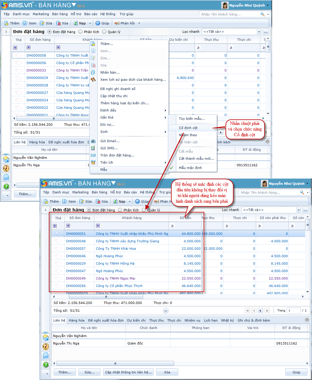 Cât thành mẫu mới: Cho phép lưu mẫu sau khi thay đổi vị trí các cột hiển thị trên màn hình danh sách thành một mẫu mới. Thao tác chi tiết như sau: