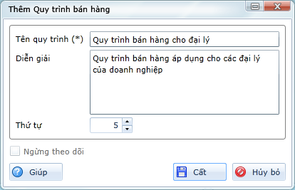 Nhập tên quy trình và các thông tin về diễn giải hay số thứ tự (nếu cần), sau đó nhấn Cất.