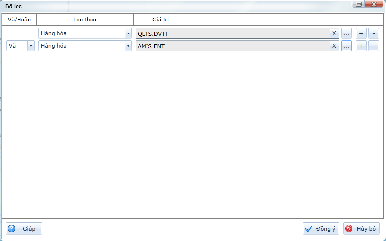 Chọn Điều kiện lọc là Hàng hóa hoặc Loại hàng hóa, sau đó chọn Thông tin Hàng hóa hoặc Loại hàng hóa tương ứng. Nhấn Đồng ý