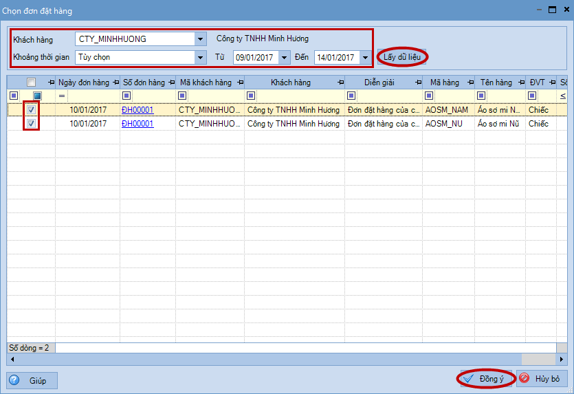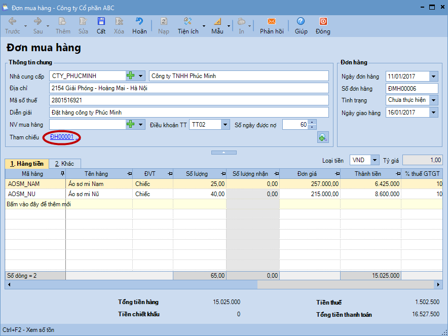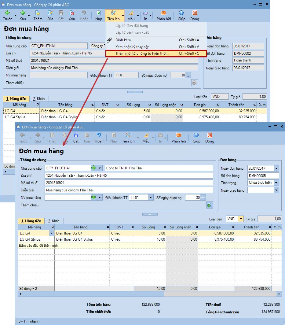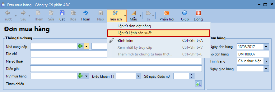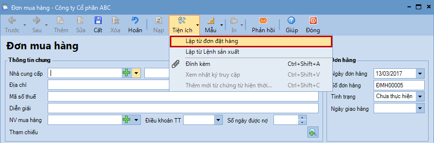 2.2. Lập đơn mua hàng từ đơn đặt hàng