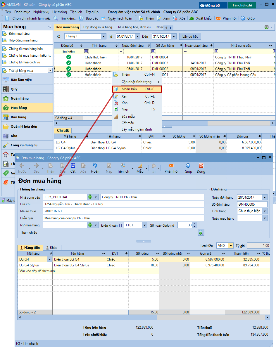 2.1. Lập từ đơn mua hàng có nội dung tương tự