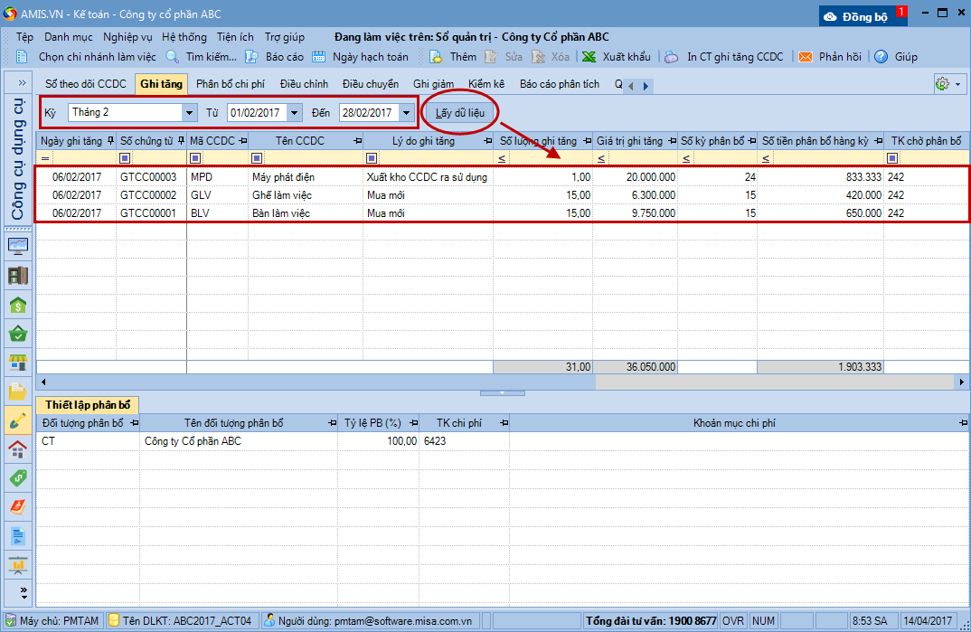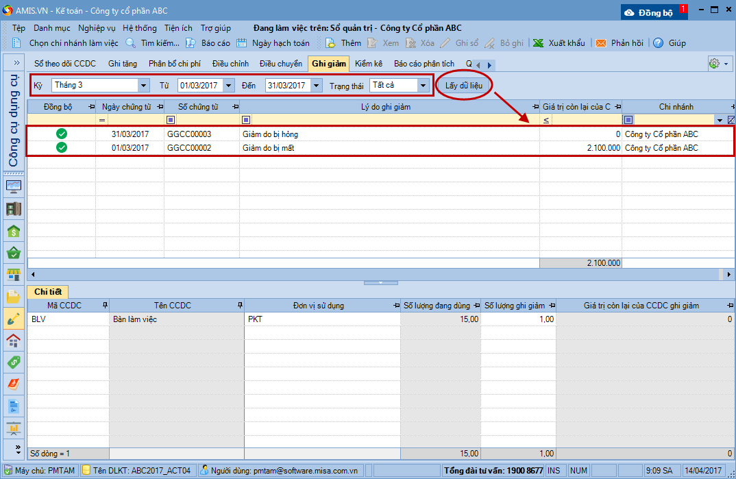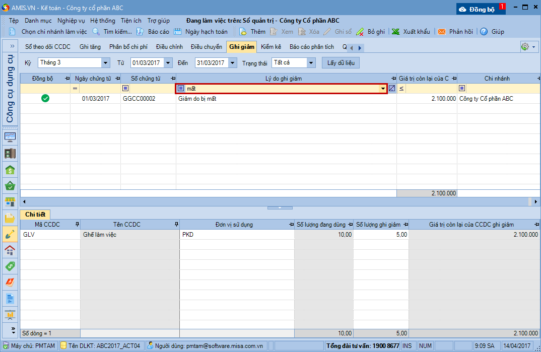 Quản lý danh sách các CCDC được ghi tăng, ghi giảm trên sổ theo dõi CCDC.