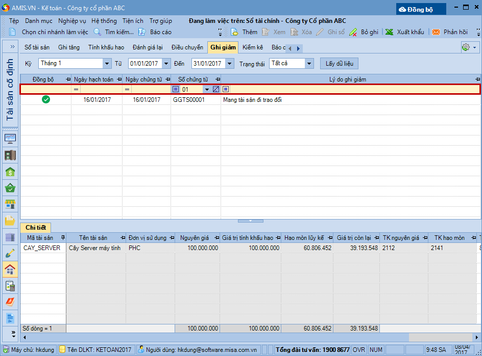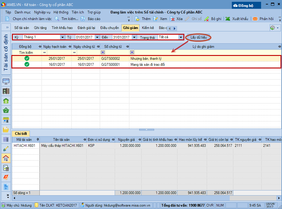 2.2. Tra cứu, tìm kiếm các TSCĐ được ghi giảm