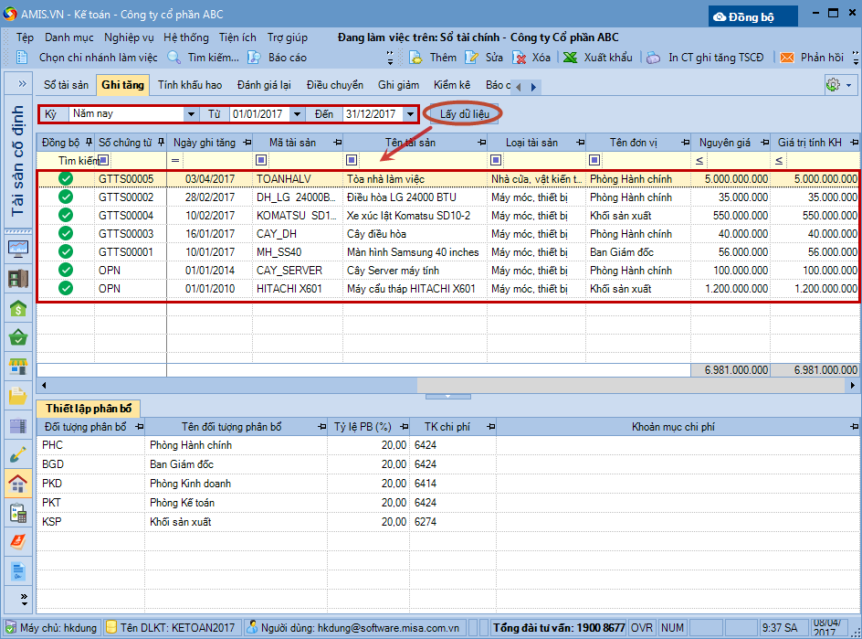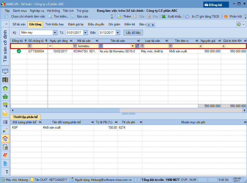 2.1. Tra cứu, tìm kiếm các TSCĐ được ghi tăng