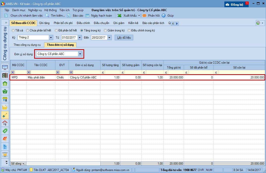 Giúp quản lý và tra cứu các thông tin về việc ghi tăng, ghi giảm, điều chỉnh, điểu chuyển, phân bổ, kiểm kê CCDC đang sử dụng tại doanh nghiệp.