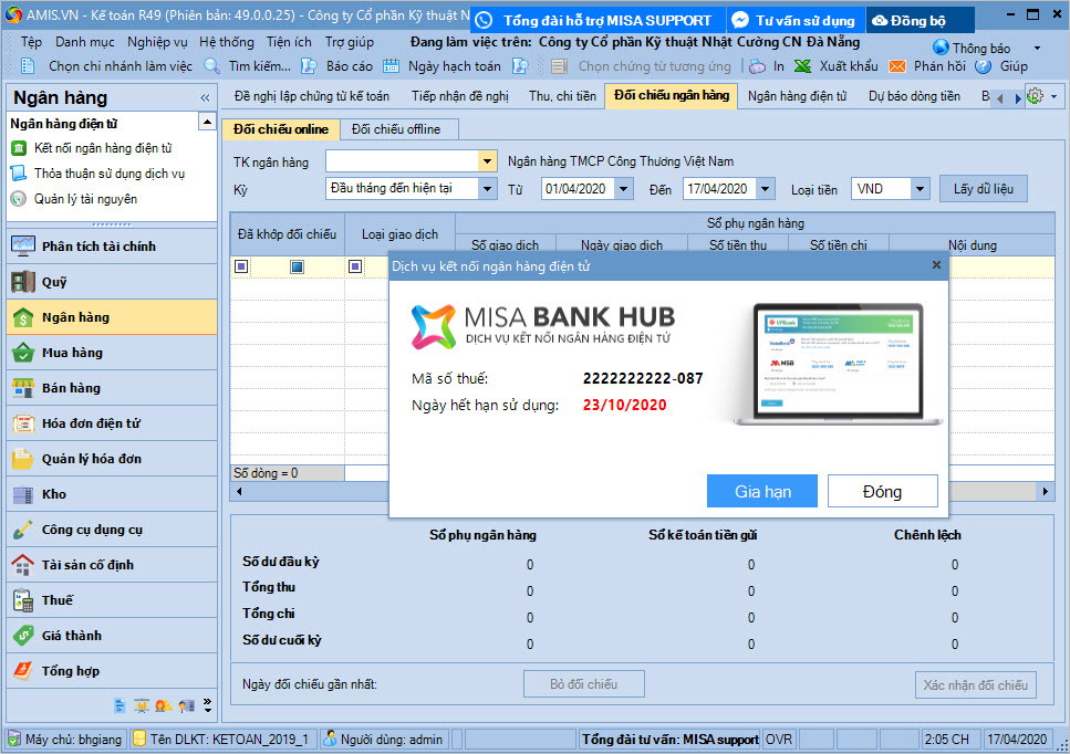 Từ phiên bản R49 trở đi: Chương trình tích hợp luồng mua và dùng thử tính năng ngân hàng điện tử để phù hợp với chính sách mới mà MISA áp dụng cho khách hàng.