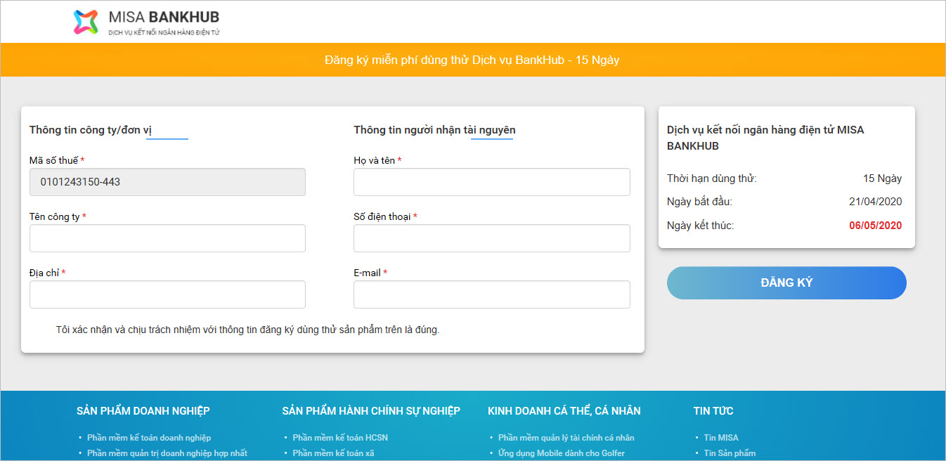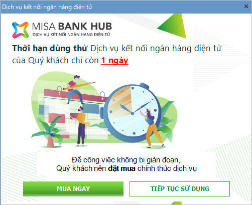 Điều này chưa phù hợp với chính sách dùng thử ngân hàng điện tử mới của MISA: Chỉ cho phép khách hàng đăng ký tài khoản và sử dụng trong vòng 15 ngày, sau đó nếu khách hàng muốn sử dụng tiếp thì phải mua sản phẩm để được cấp thuê bao chính thức.