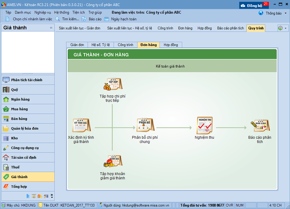 Đối với các doanh nghiệp áp dụng theo TT133, việc tính giá thành theo Đơn hàng được thực hiện theo các bước sau: