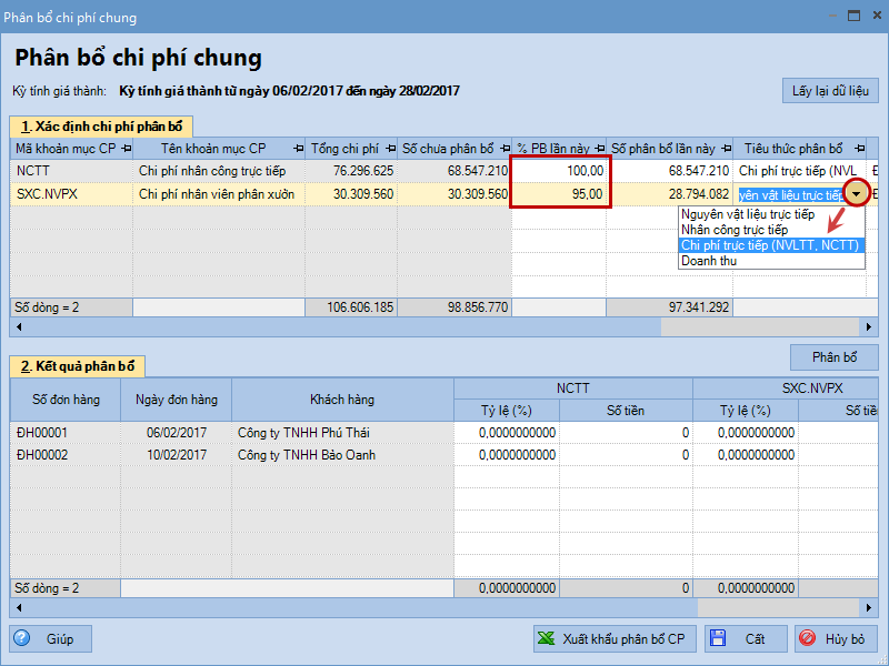 Bước 6: Phân bổ chi phí chung