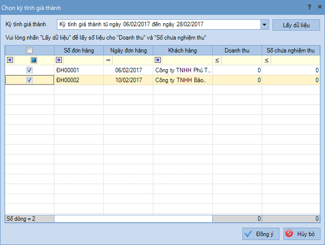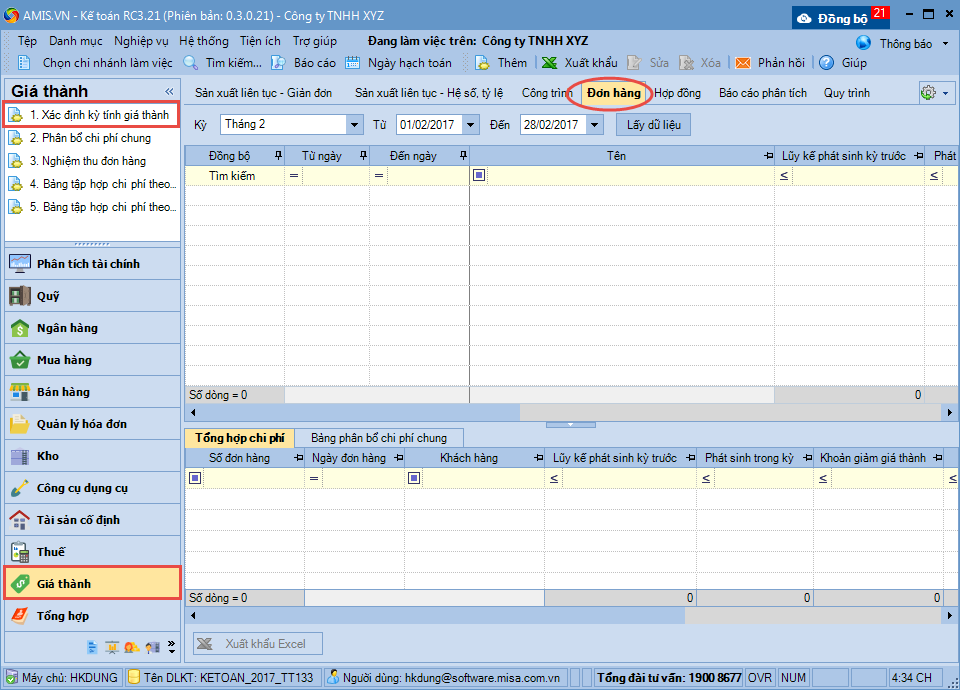 Bước 2: Khai báo đơn đặt hàng được sử dụng để tập hợp chi phí khi tính giá thành