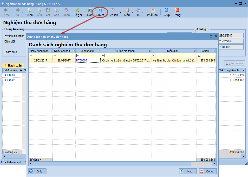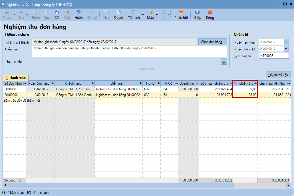 Bước 7: Nghiệm thu đơn hàng