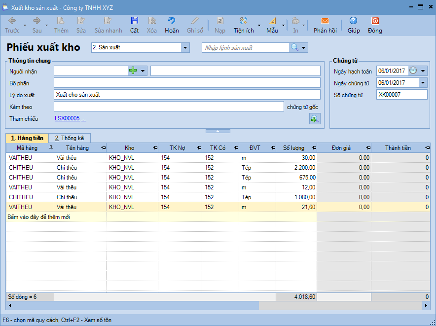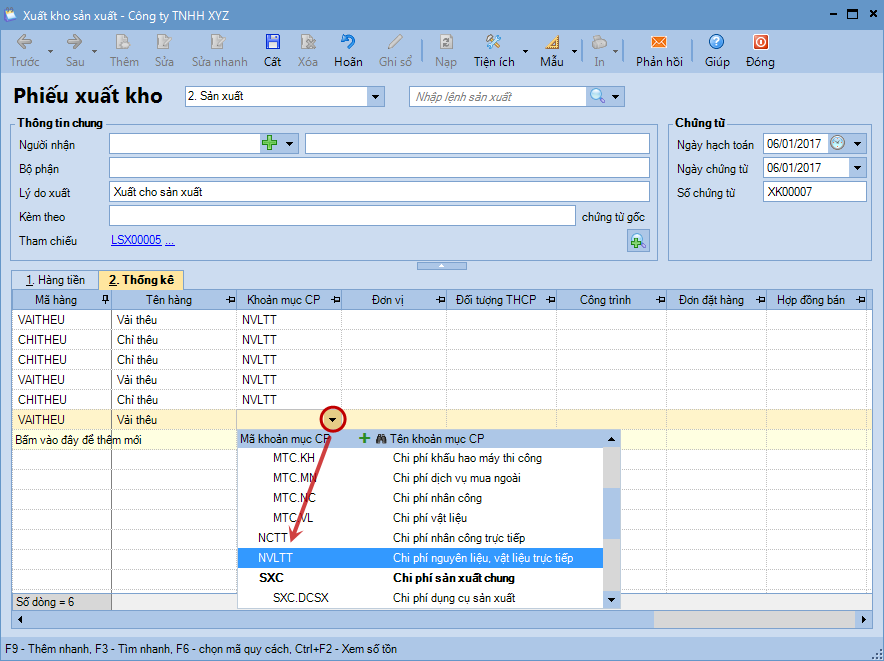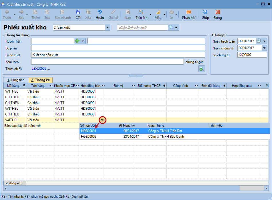 6. Khai báo phiếu xuất kho.