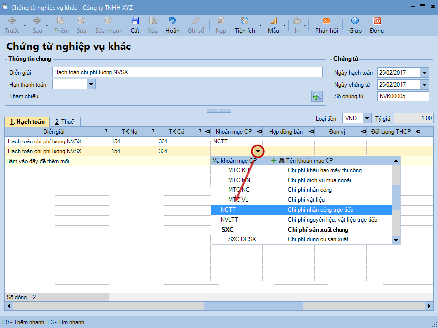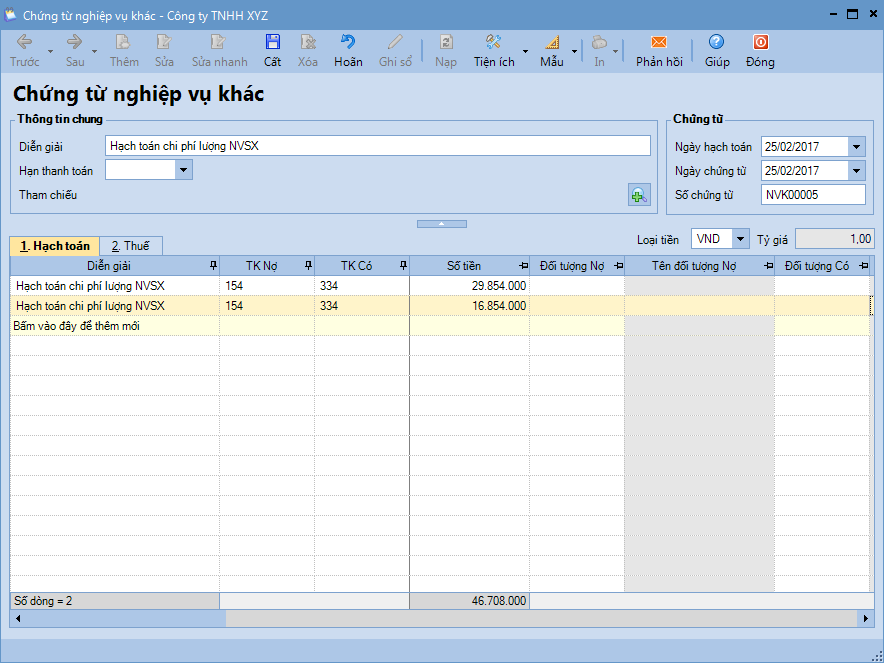 2. Khai báo thông tin về hợp đồng.