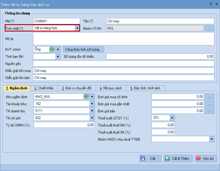3. Khai báo thông tin về đối tượng THCP và chọn đối tượng tính giá thành.