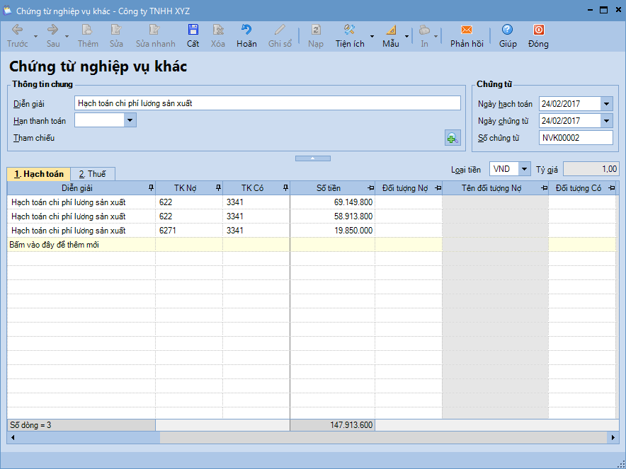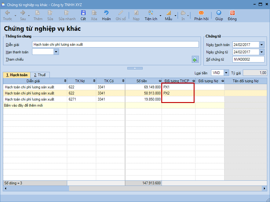 Hạch toán các chứng từ liên quan đến TK 621, 622 và 627 chi tiết theo từng đối tượng THCP trên phân hệ Quỹ, Ngân hàng, Tổng hợp.